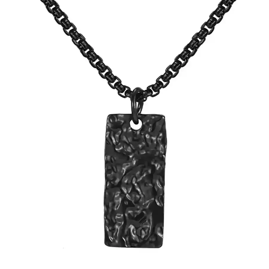 Black Forge er et kraftfuldt og moderne halssmykke i sort rustfrit stål med en markant hamret overflade.