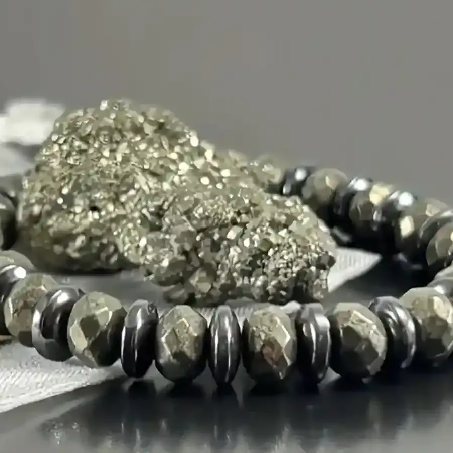 Dette håndlavede armbånd i ægte hematit udstråler styrke, maskulinitet og tidløs elegance.