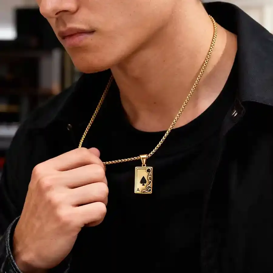 Forgyldt ædelstål halskæde med Spar Es motiv.