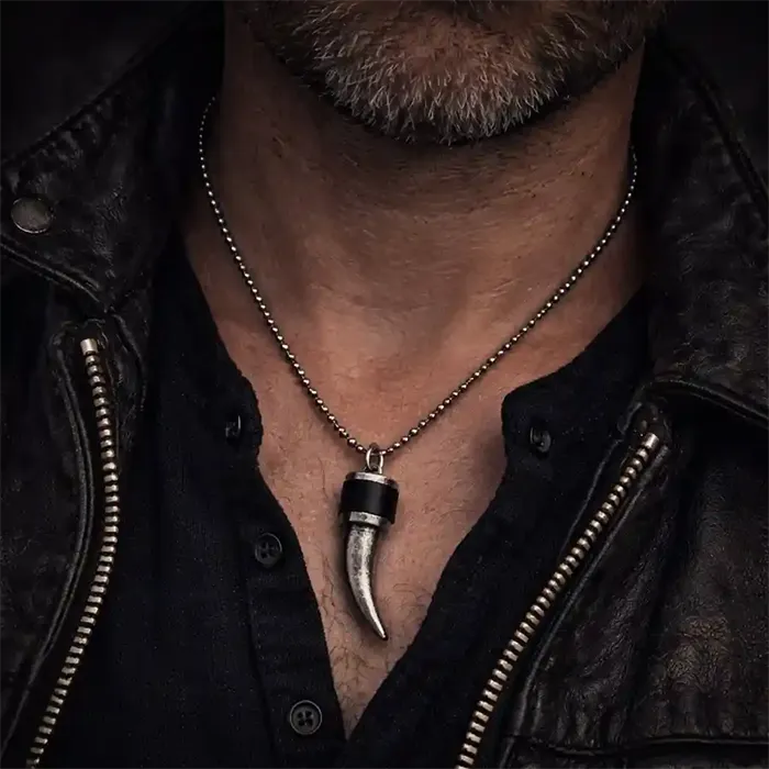 "Chapo" halskæden fra Marjoe er et råt og maskulint halskæde til mænd med et markant tandformet vedhæng. Det kraftfulde design giver smykket et robust og maskulint look, der passer perfekt til mænd med en stærk og moderne stil.