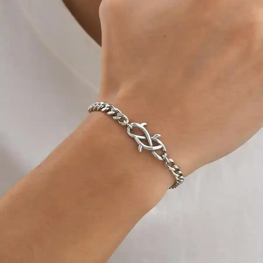 Fremstillet i slidstærkt stål, der holder glansen år efter år. Et tidløst herresmykke, der kombinerer styrke, tro og minimalistisk elegance.