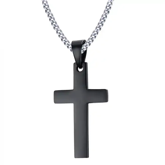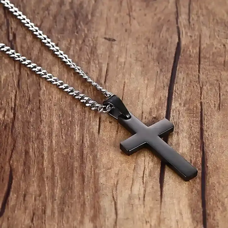 Sort kors halskæde til mænd i rustfrit stål – 35×20 mm vedhæng