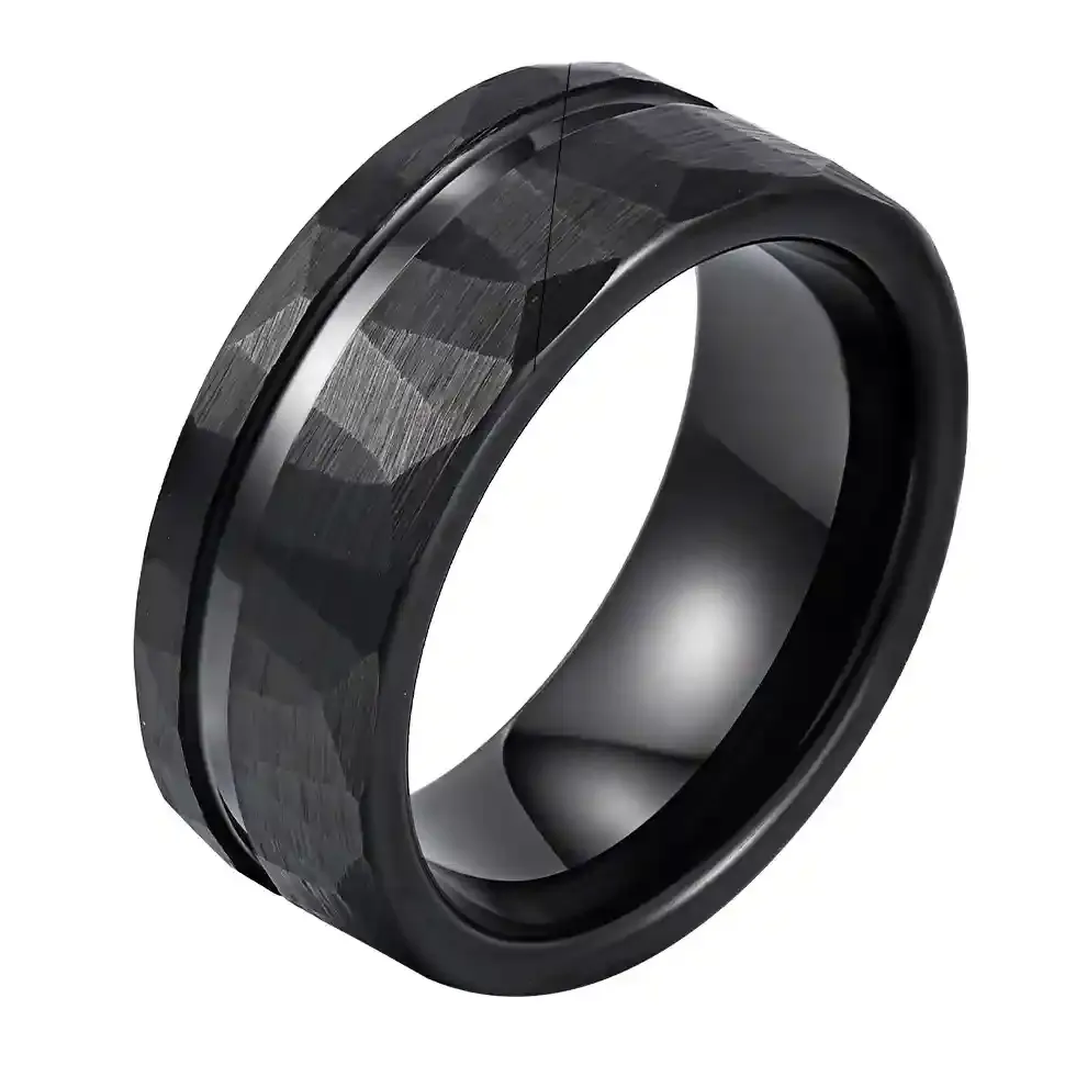 Obsidian Edge er en sort tungstenring til mænd, designet med en markant facetteret overflade og en mat poleret kant, der giver et råt og eksklusivt udtryk.