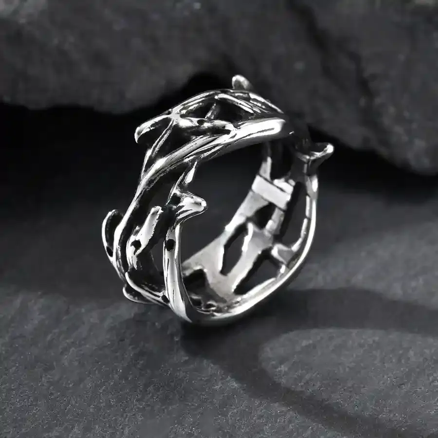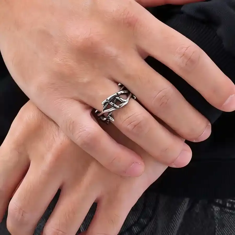Herrering til mænd i oxyderet rustfrit stål