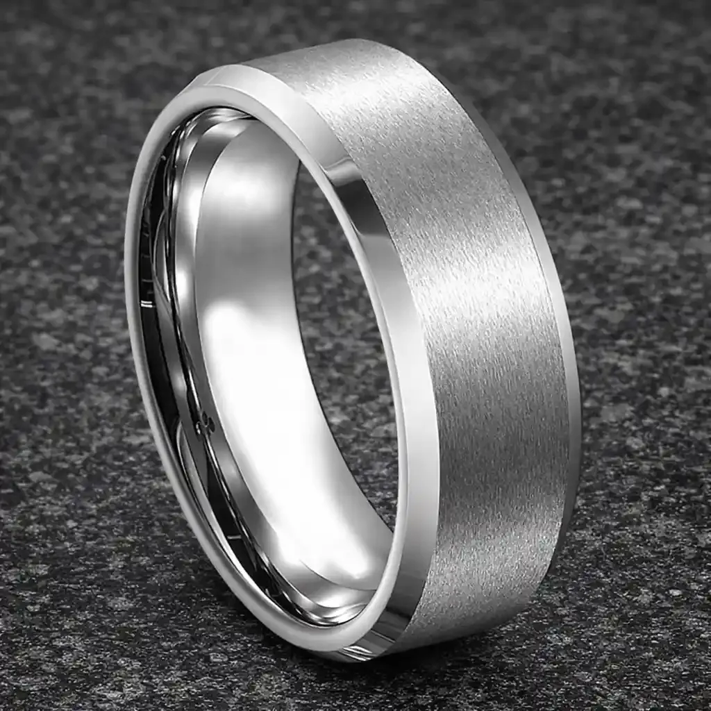 Fantastisk herrering i rustfri ædelstål og har en matbruch-overflade kombineret med polerede sider, hvilket giver den et usædvanligt, men stilfuldt look.