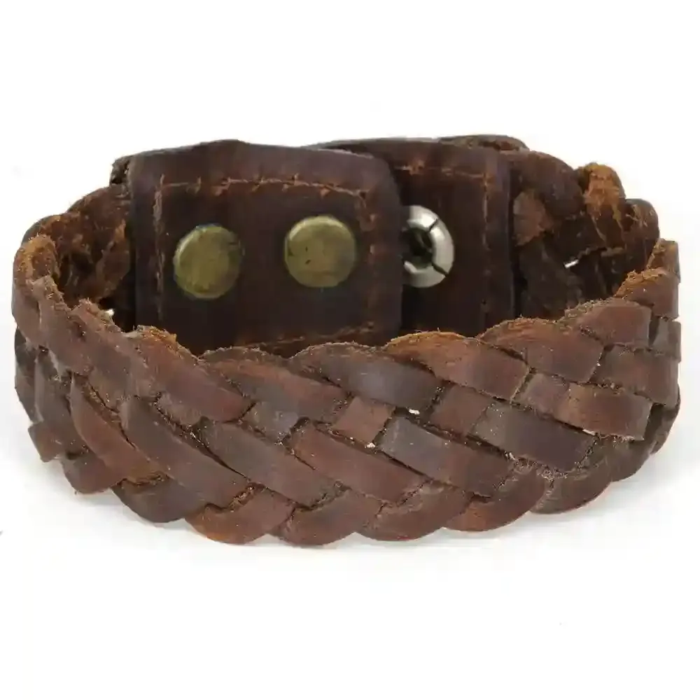 Flettet læderarmbånd til mænd i brun ægte læder – Rustic Braid