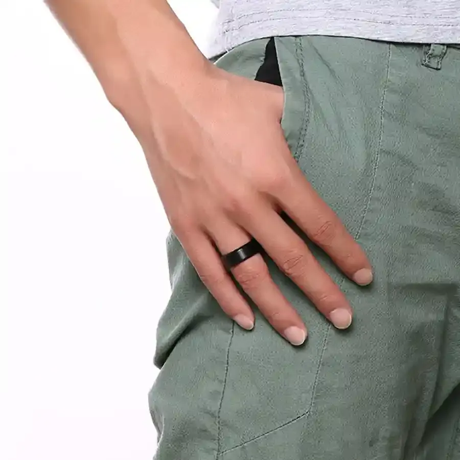 Denne sorte titanium ring til mænd er et sikkert valg for dig, der ønsker et moderne, tidløst og diskret kraftfuldt herresmykke.