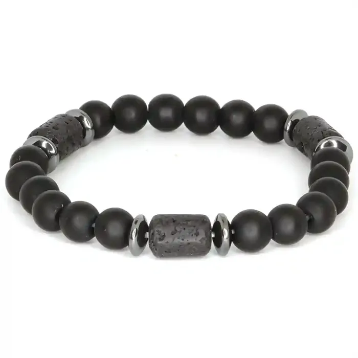 Sort Perlearmbånd til Mænd med Blackstone, Lava & Hematit (8mm)