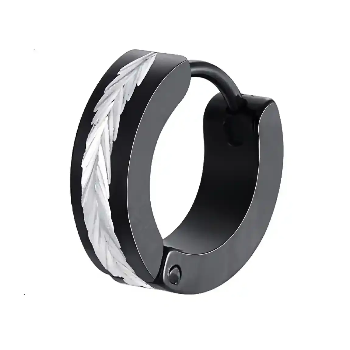 Black Steel Groove Hoop er til dig, der vil have et mørkt, råt og moderne udtryk. Den dybe sorte overflade i rustfrit stål kombineret med den sølv-riflede midte skaber en fed kontrast, der giver øreringen et maskulint, stramt og stilbevidst look.