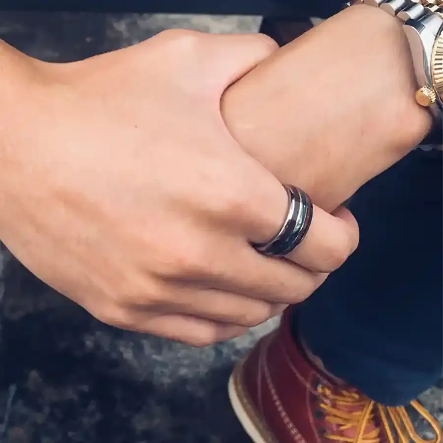 Denne eksklusive tungstenring kombinerer styrke og naturens elegance.