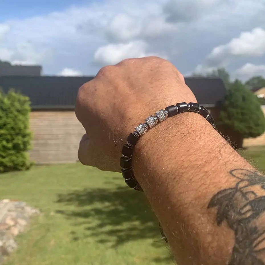7mm sorte perler og beads i rustfri stål med CZ sten.