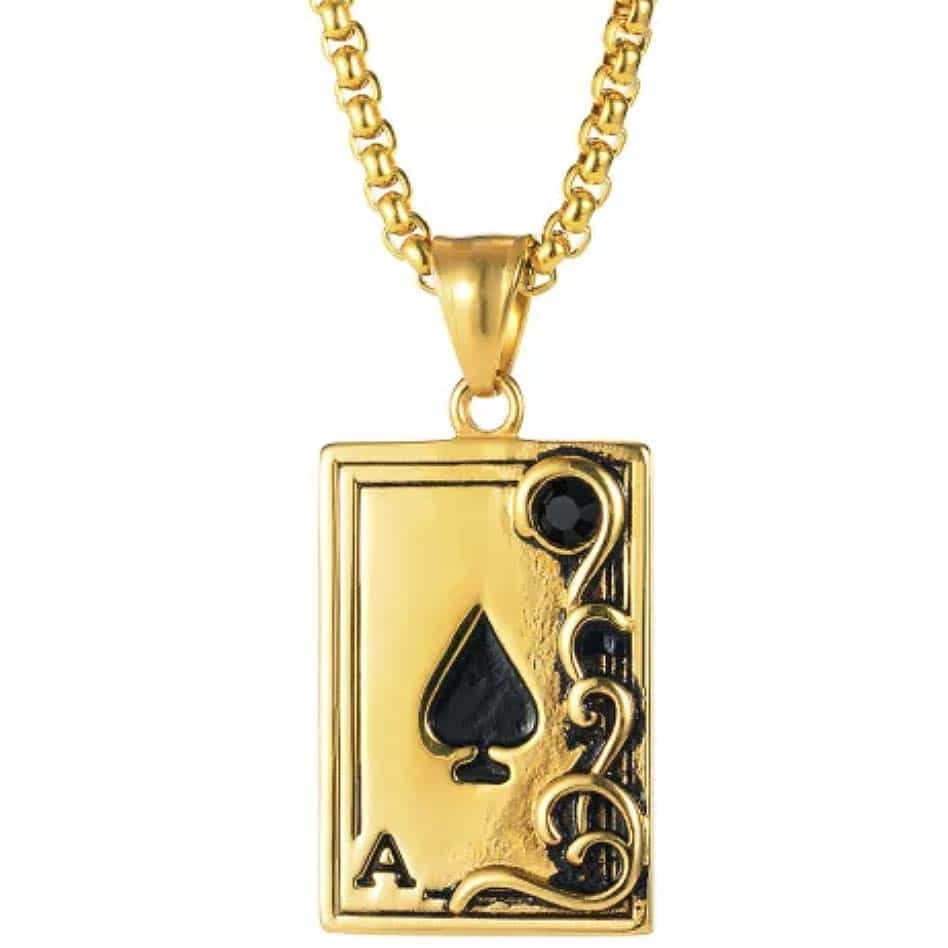 Forgyldt ædelstål halskæde med Spar Es motiv.